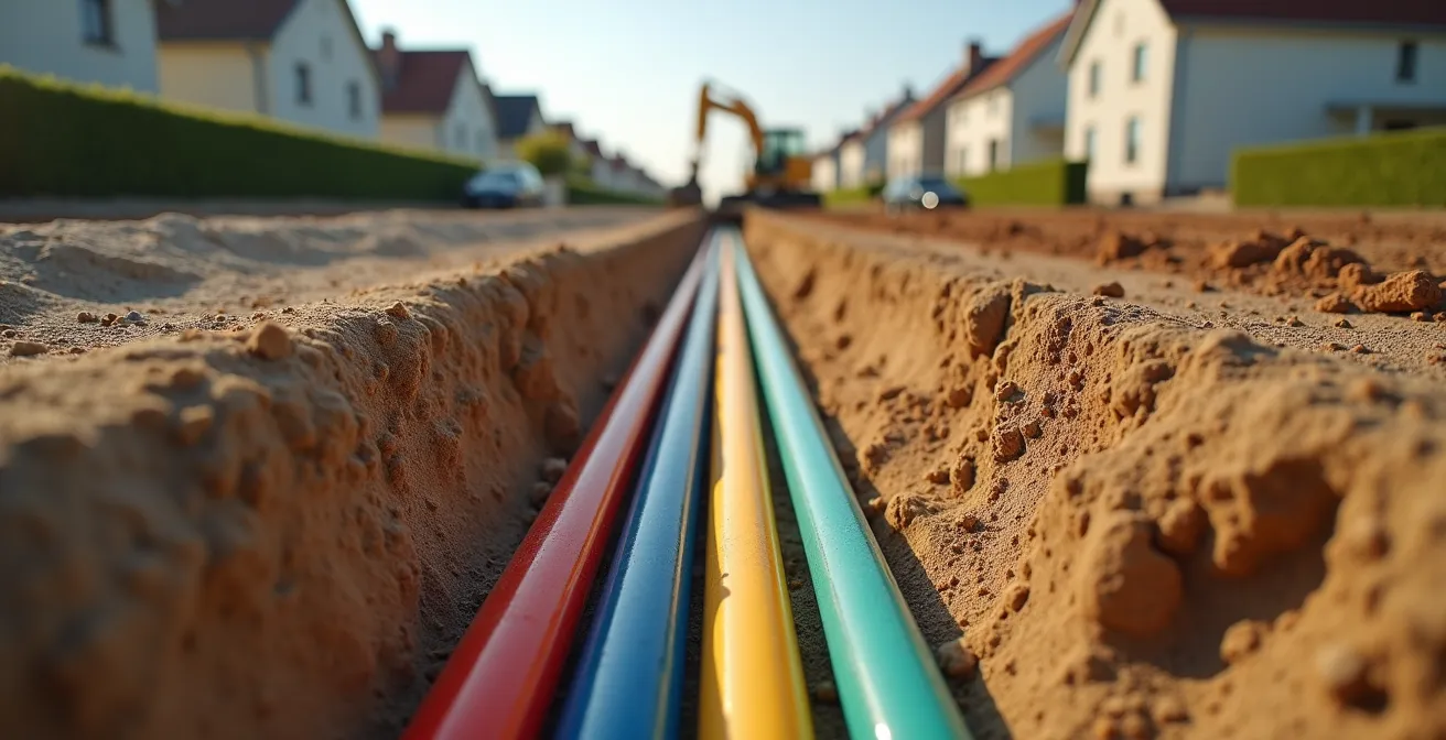 Le véritable enjeu des tranchées VRD n’est pas de poser des gaines, mais de garantir la pérennité et la sécurité des artères vitales de votre maison pour les 50 prochaines années. Chaque détail, de la couleur d’un fourreau à la position d’un regard, en passant par le compactage du remblai, a une implication directe sur votre confort futur, vos factures et votre tranquillité d’esprit. Oublier un tire-fil, inverser deux gaines ou négliger une pente peut transformer une simple intervention de maintenance en un cauchemar logistique et financier.